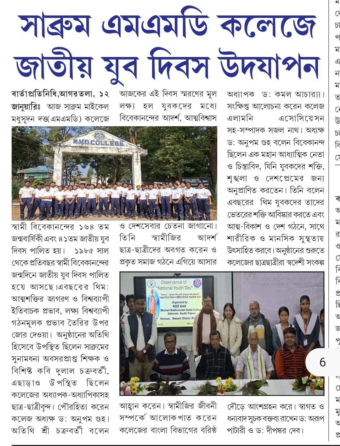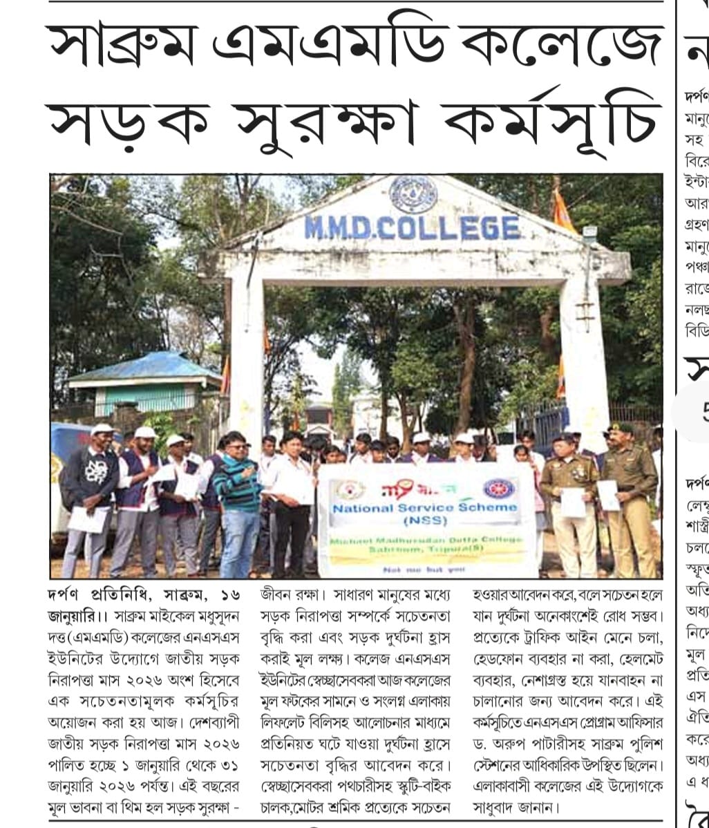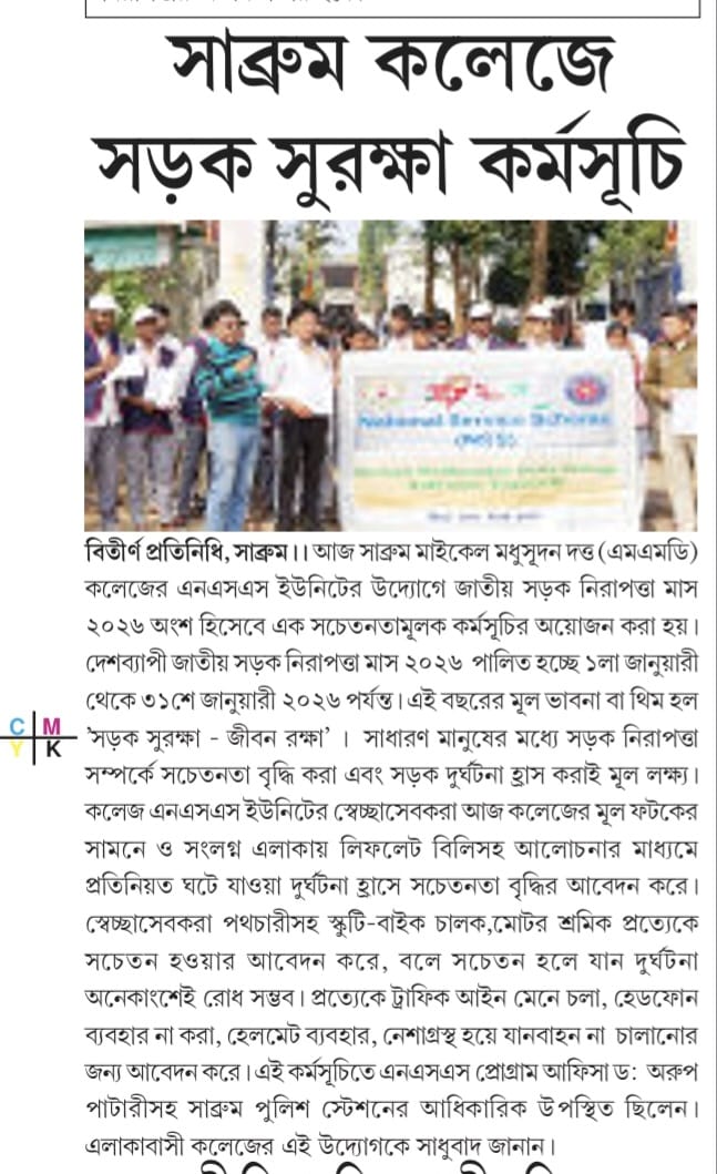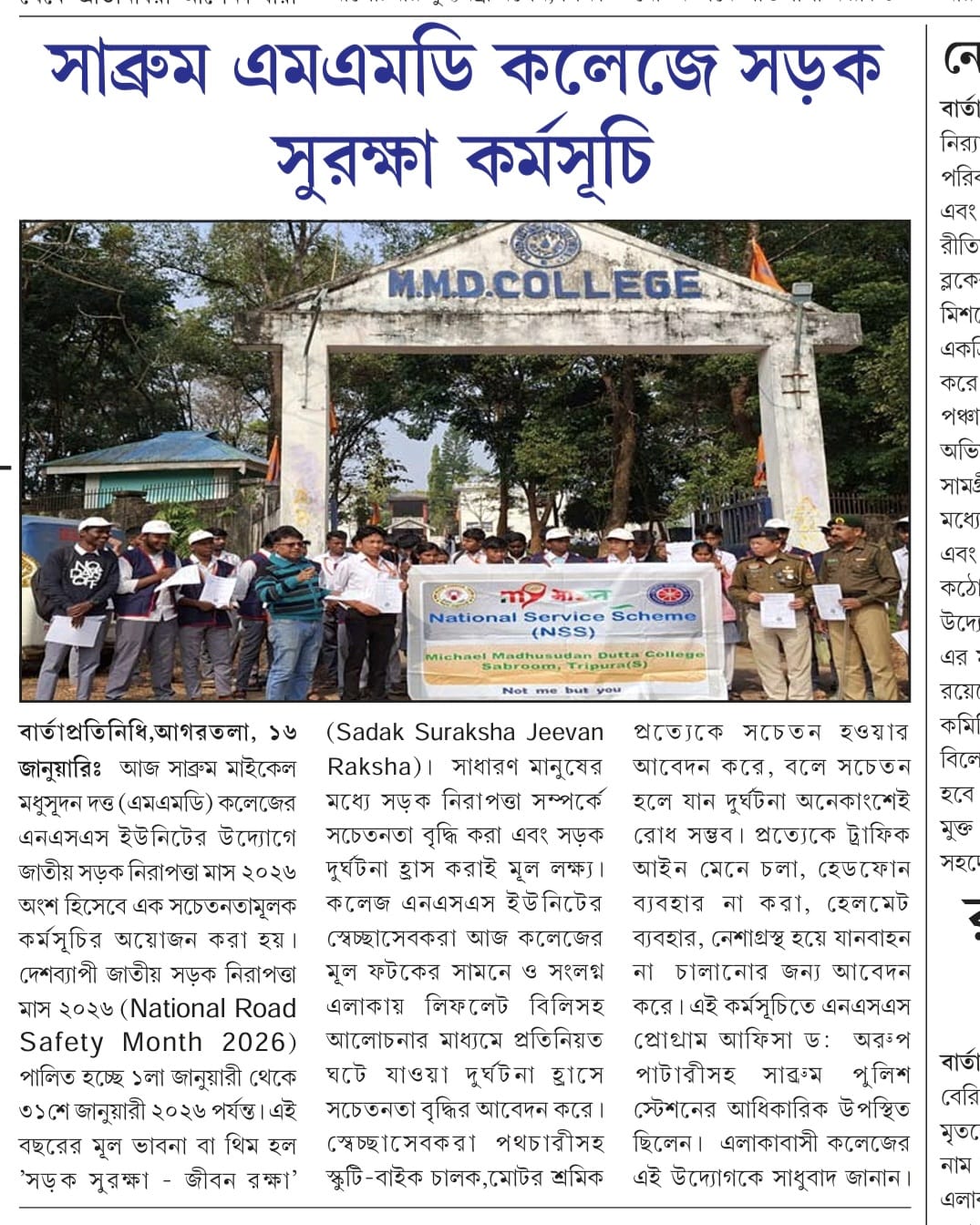 - 03/01/2024 Memorandum to participate in Swaccha Bharat Abhiyan jointly by SDH(Sabroom Dist Hospital) & NSS Unit, MMD Collece