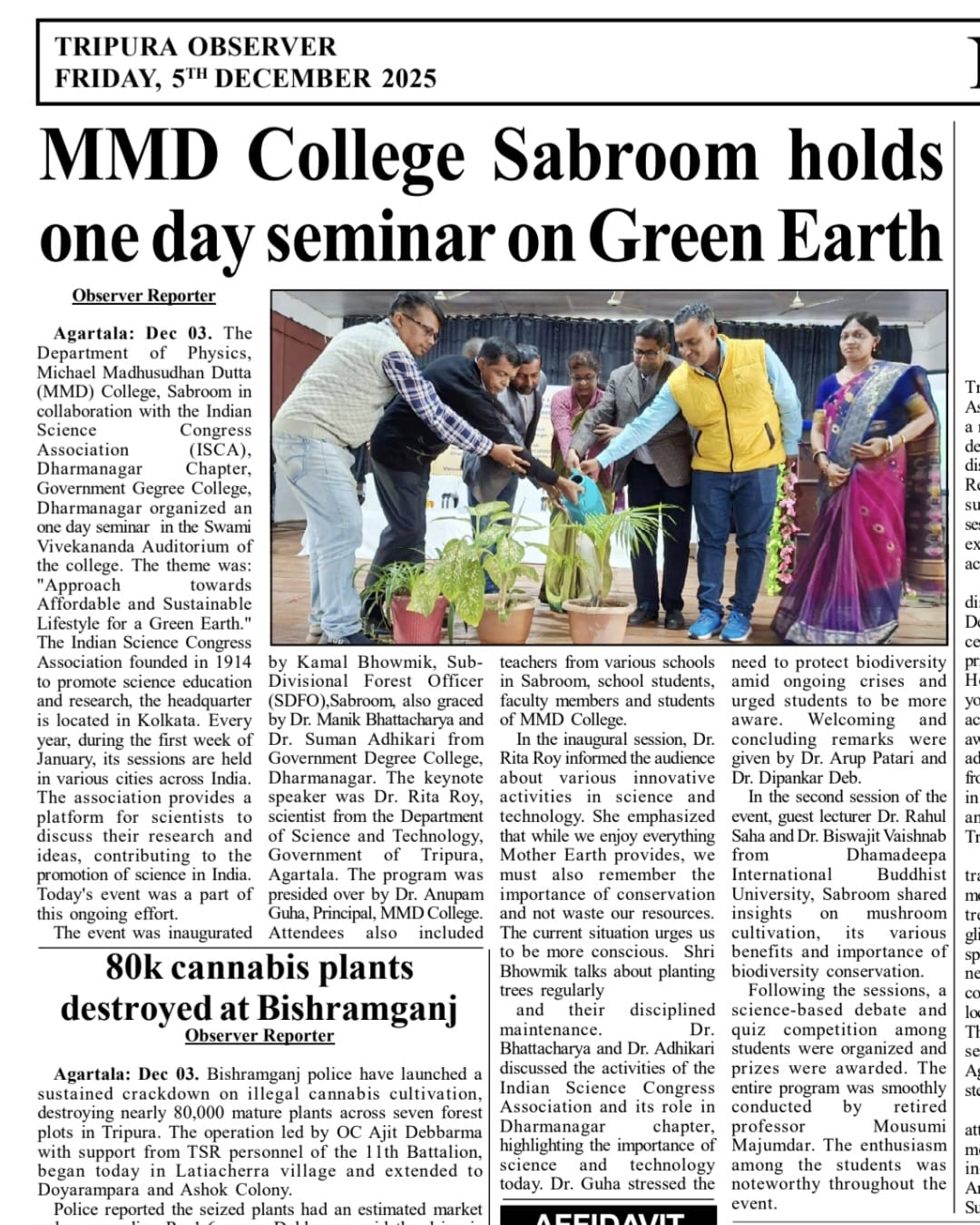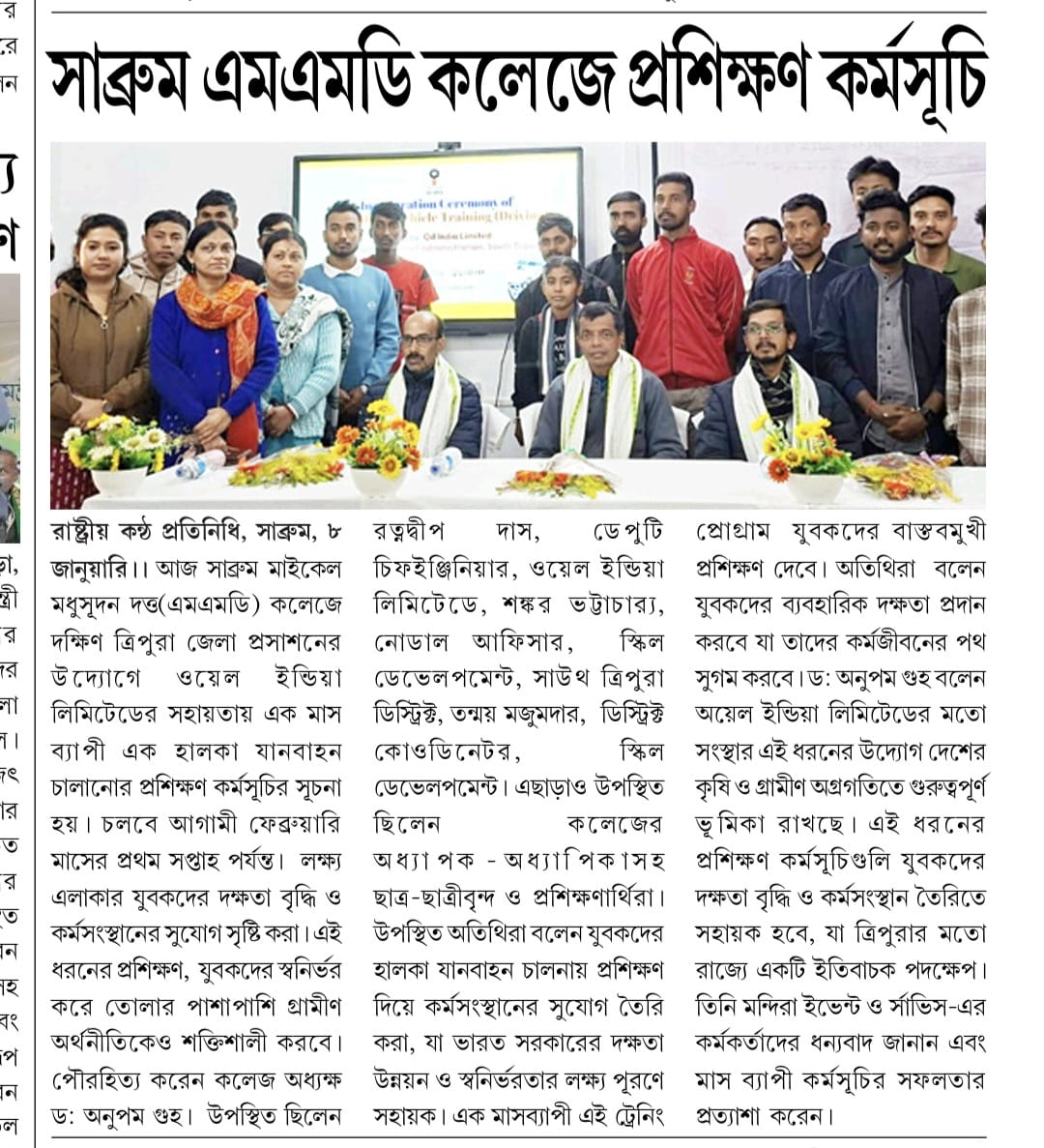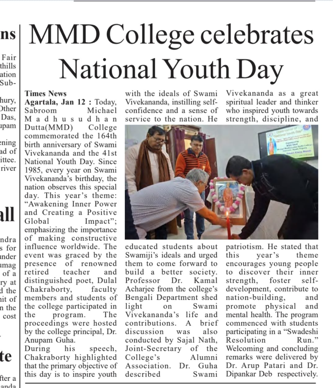 - 03/01/2024 Memorandum to participate in Swaccha Bharat Abhiyan jointly by SDH(Sabroom Dist Hospital) & NSS Unit, MMD Collece
