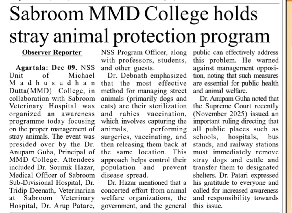 - 08/12/2025 Notice to attend the awareness programme on the proper management of stray animals at college campus or road side