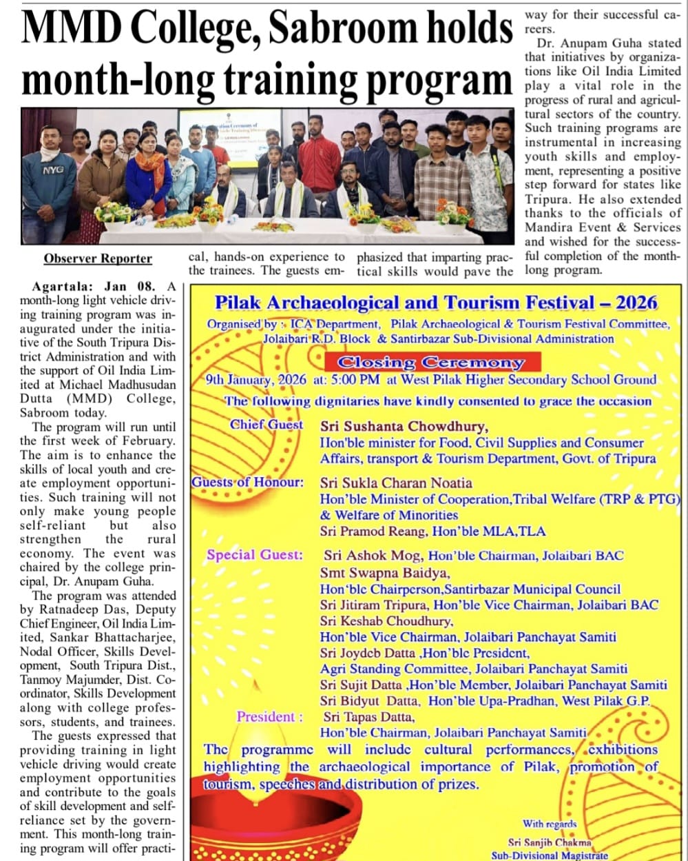 - 18/01/2025 Notice to Celebrate 47th Kokborak Day at Swami Vivakananda Auditorium MMD College Sabroom